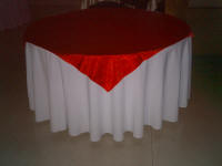 Mantel Blanco / Cubre Rojo Brocado sin cenefa satinada |